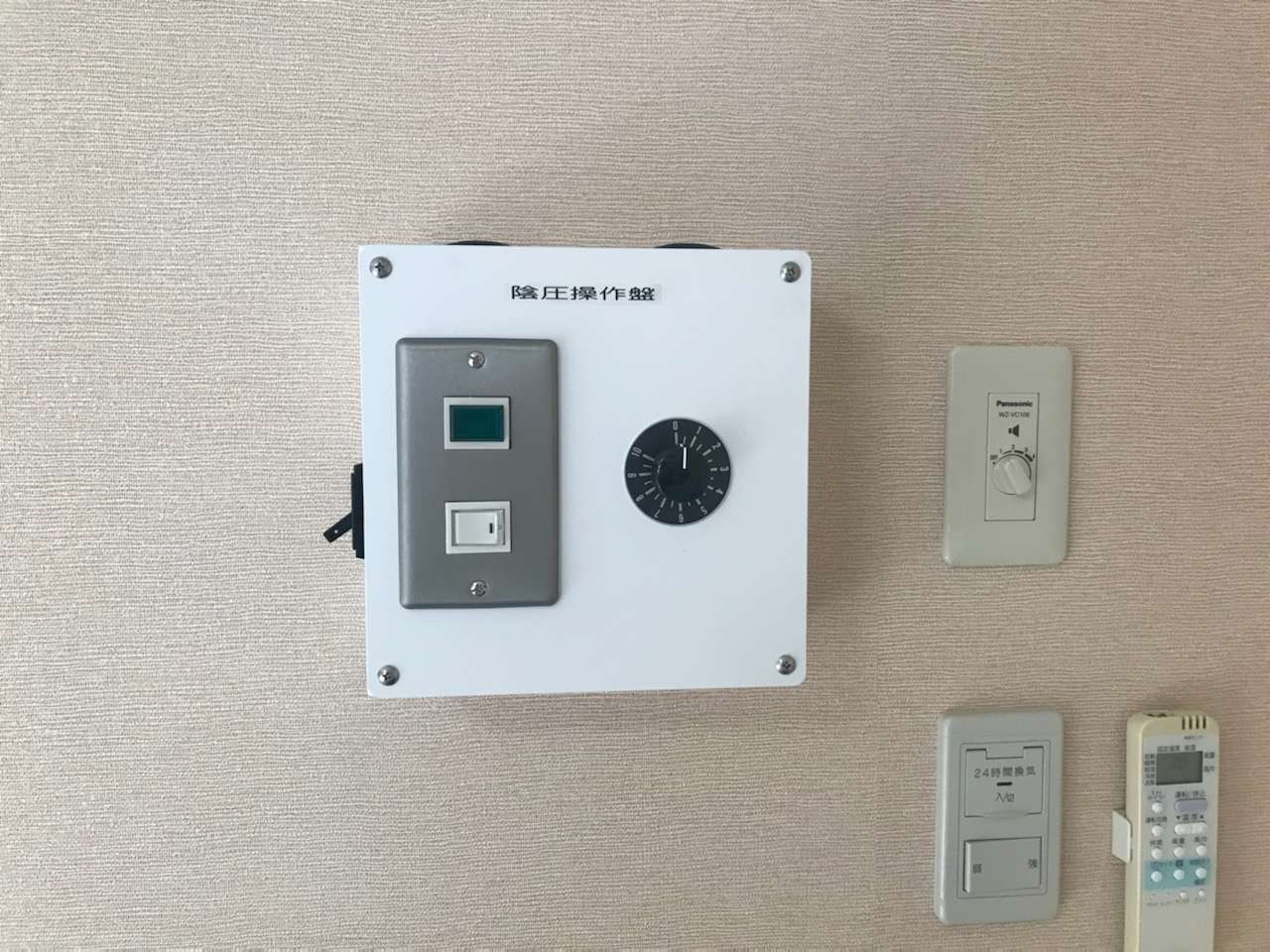 廊下側にスイッチを設ける事で部屋内に入る事なく陰圧装置を作動できるように改良いたしました。