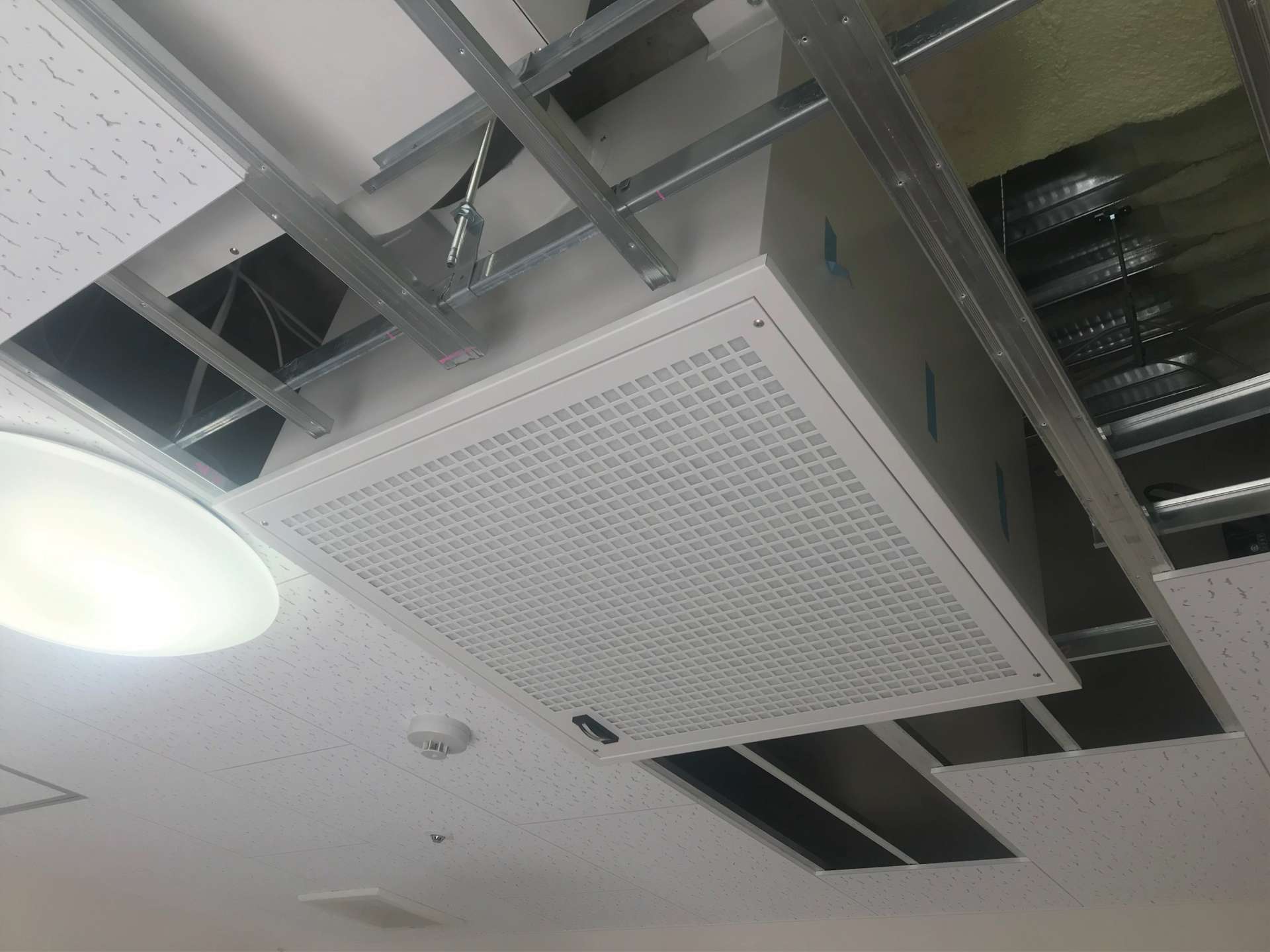 天井へ埋込埋め込む場合の陰圧装置施工中の写真です。